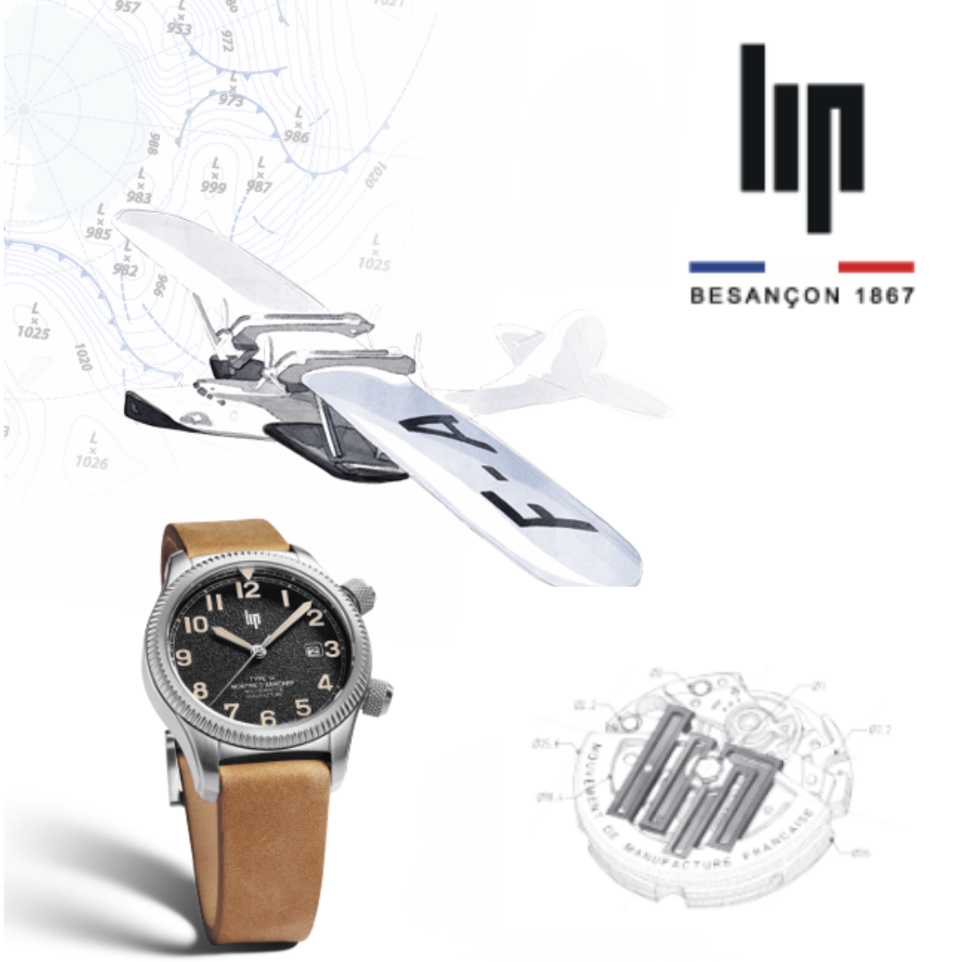 Dès 1935, LIP équipe l’aviation avec des instruments de bord comme la Type 10, installée dans l’avion de Jean Mermoz. Conçues pour résister aux conditions extrêmes, ces montres privilégient lisibilité, fiabilité et précision.